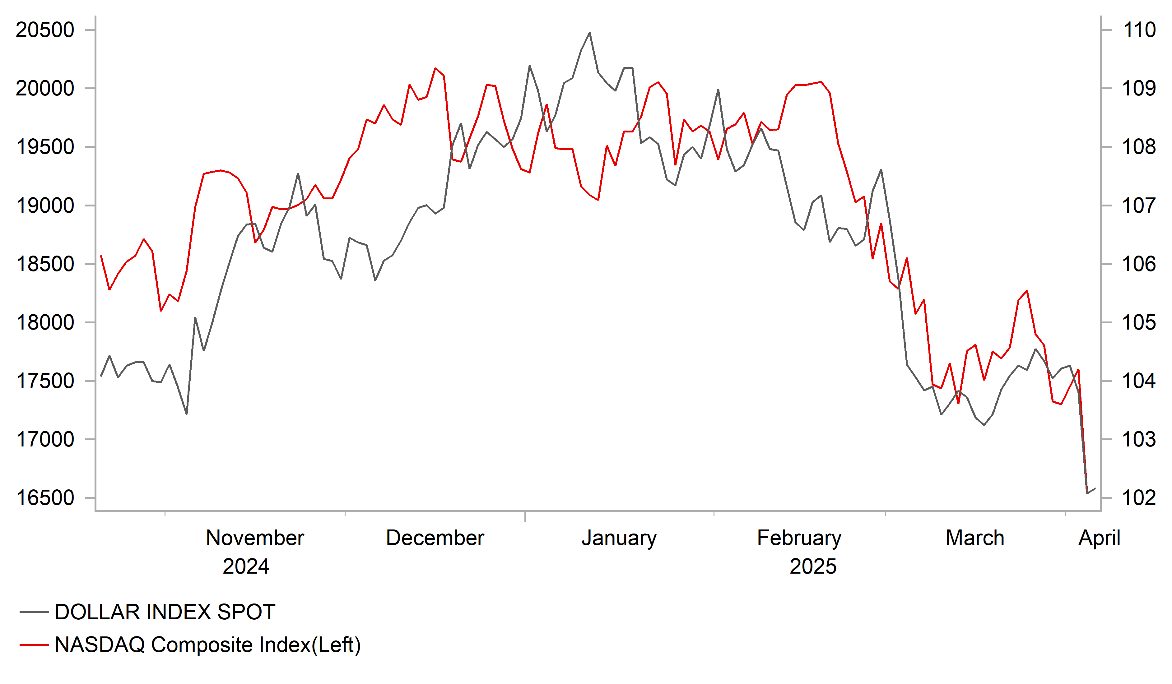 Historically, following a sharp decline in U.S. equities there has been a strong tendency for the USD to appreciate in the subsequent periods. However, the current simultaneous decline in the USD and U.S equities represents a broader loss of confidence in the US economy and challenges the concept of US exceptionalism.