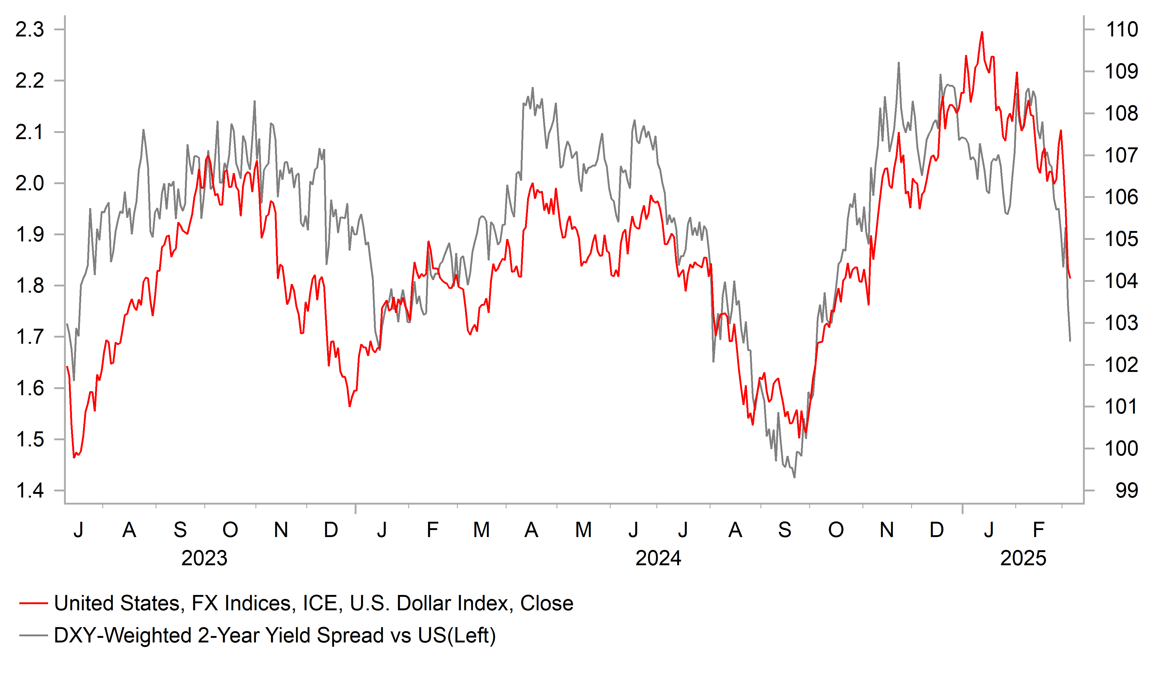 The sell-off of the US dollar this week is of historic proportions. On a DXY basis, the drop is between 3.5%-4.0%. In the period back to the extreme volatility during the GFC there are only two occasions when the dollar fell by more – in November 2022 (easing inflation fears) and in March 2020 (covid). There are a number of factors that triggered this move with the surge in rates in Europe on the plan in Germany from a considerable easing of fiscal spending that alters one key drag that has held growth back in the euro-zone since the German debt brake was enshrined into the German constitution in 2009. It notably alters the growth outlook and is compelling reason for an adjustment in market pricing. Still, risks remain on the horizon and some US dollar recovery in Q2 remain plausible given aggressive tariff action doesn’t appear fully priced into the markets abroad. The extent of US slowdown over the near-term is also unclear following a solid jobs report today.