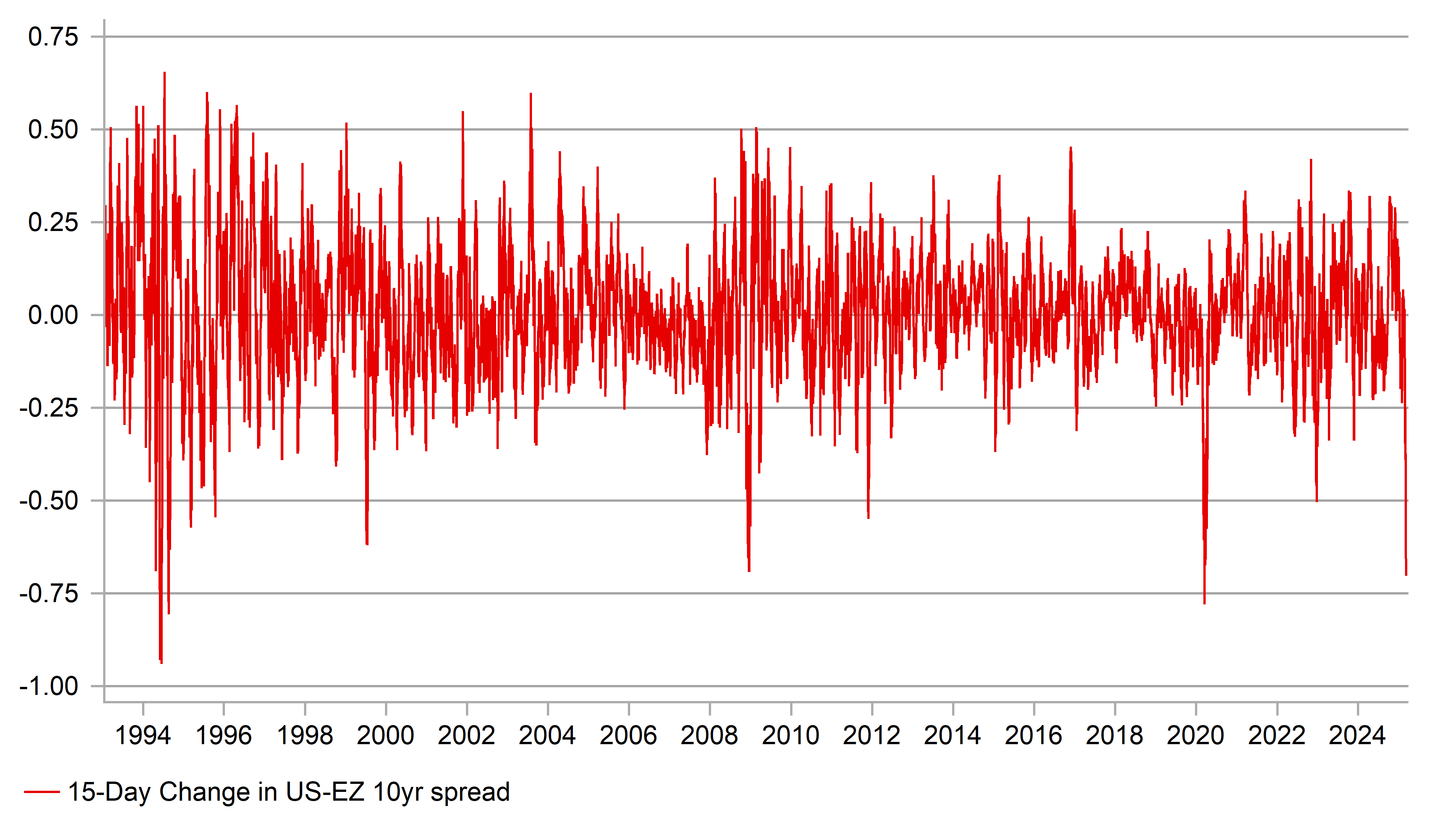 OF LARGEST DROP IN 10YR US-EZ SPREADS