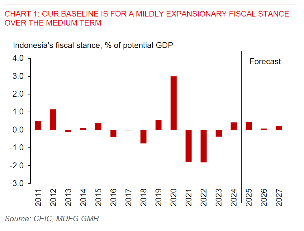 We expect the government to ramp up spending in H2 2025, as budget disbursement has been slow, leaving room for further fiscal support. A mildly expansionary fiscal stance is also likely in 2026, given ongoing domestic and external headwinds. While the government targets a narrower deficit of 2.48% of GDP in 2026, we believe fiscal consolidation will be delayed. We forecast a wider fiscal deficit of 2.9% of GDP in 2026, reflecting our less optimistic revenue and growth assumptions compared to the budget. As a result, we estimate the fiscal impulse to rise by 0.1% of potential GDP in 2026, following an estimated 0.5% increase this year.