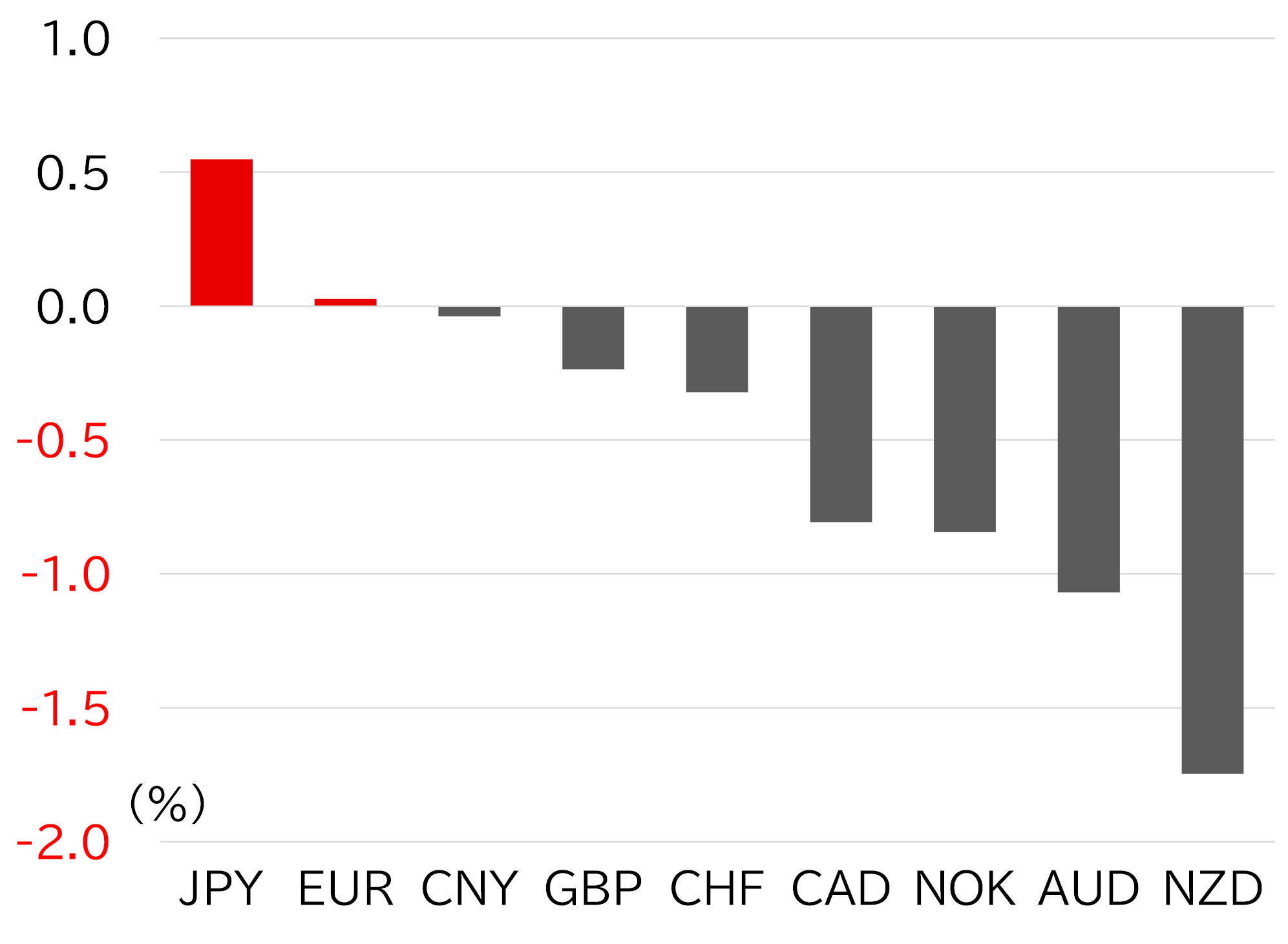 The USD/JPY opened the week at 154.20. Trading was quiet in the low 154 range on 3 November, a Japanese holiday, before conditions shifted on 4 November. The pair rose to the high for the week of around 154.50 in early Tokyo hours, but fell back to around 153.50 after Finance Minister Satsuki Katayama said "we are seeing one-sided and rapid movements in the currency market" and following a sharp drop in the Nikkei 225. Yen buying picked up steam on 5 November, pushing the pair temporarily below 153. The USD/JPY then recovered, rising back to above 154 supported by firm US economic data. The pair slipped toward 153 again toward the weekend as concerns over a slowdown in the US labor market weighed on the dollar, and remained near that level at the time of writing (Figure 1). Among G10 currencies this week, the yen was the strongest performer. In contrast, as the recent dollar rally lost momentum, petrocurrencies such as the Canadian dollar and Norwegian krone, along with the antipodean currencies, underperformed (Figure 2).