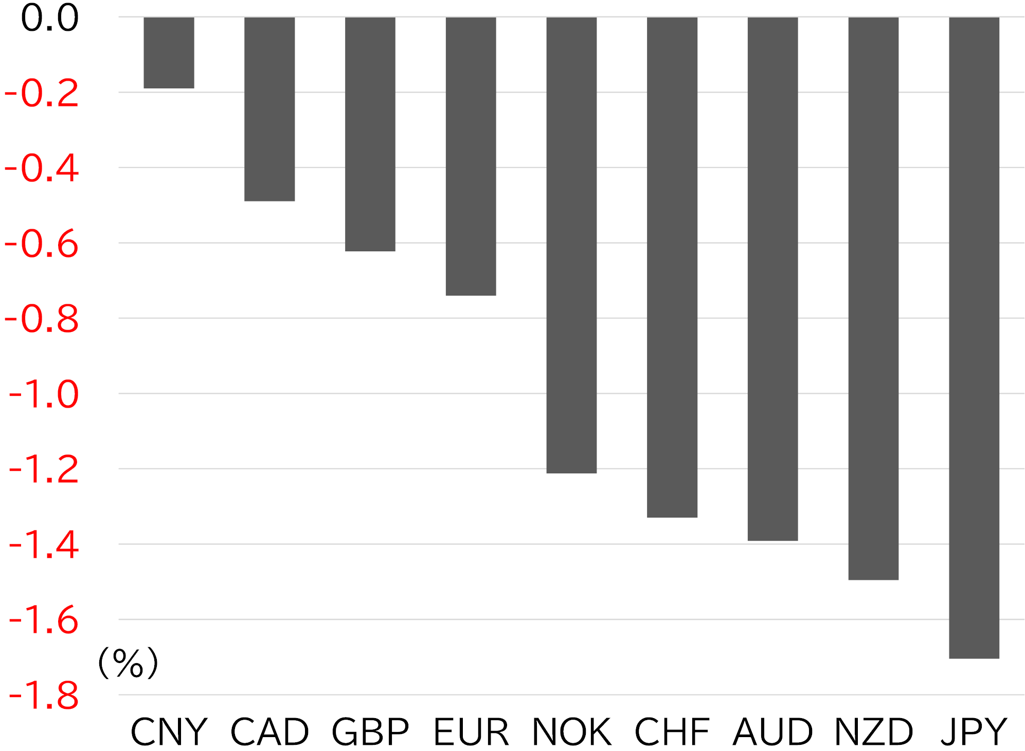 The USD/JPY opened at 154.61, near this week's lows. The pair edged higher on 17 November, supported by news that Prime Minister Sanae Takaichi and BOJ Governor Kazuo Ueda would hold talks on 18 November. The pair climbed into the 155 range during US hours. Brief yen buying emerged after the meeting on 18 November and pushed the USD/JPY temporarily below 155, but the upward trend continued as fading expectations for Fed rate cuts supported the dollar. On 19 November, Finance Minister Satsuki Katayama, Minister of State for Economic and Fiscal Policy Minoru Kiuchi, and Governor Ueda held discussions in the early evening. Yen selling strengthened after Katayama said no exchange-rate issues had been discussed, and the pair moved above 156. It continued its ascent, rising into the 157 range as dollar buying accelerated due to news that the US November employment report would be released after the December FOMC meeting, and after the minutes of the October FOMC showed increased caution toward an additional rate cut. On 20 November, share prices rose sharply on strong earnings from a major US semiconductor manufacturer, pushing the USD/JPY up to 157.90. However, the pair did not reach 158, and Finance Minister Katayama's 21 November comment that "intervention is an option" helped keep the USD/JPY below 157.50 (Figure 1). Among G10 currencies this week, fading expectations for Fed rate cuts produced broad-based dollar strength. The yen weakened across the board, with the EUR/JPY rising toward 182 (Figure 2).