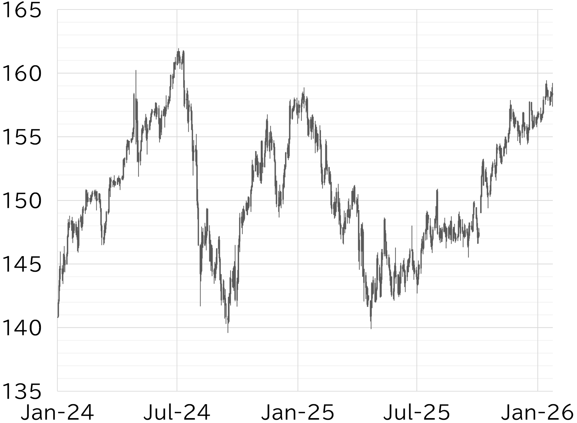 The USD/JPY opened the week at 157.57. Dollar selling led early in the week after tensions between the US and Europe intensified over Greenland, pushing the pair down to 157.44. However, risk-off yen buying did not persist, and the USD/JPY recovered to around 158. The USD/JPY rose to around 158.50 as overseas investors entered the market on 21 January. This was driven by a sharp rise in yields after supply-demand conditions in the bond market deteriorated following Prime Minister Sanae Takaichi's press conference on the evening of 20 January. The pair then briefly fell back to around 157.50 after US Treasury Secretary Scott Bessent and Japan's Finance Minister Satsuki Katayama repeatedly called for calm in financial markets, before settling around 158. Dollar buying resumed on 21 January after US President Donald Trump backed off from threats of imposing punitive tariffs on European countries that opposed his plan to annex Greenland, and the USD/JPY rose beyond 158.50 through 22 January. The pair climbed to 158.90 following the release of better-than-expected US economic data, although upside momentum was capped amid concerns over developments in the Middle East. The BOJ left policy rates unchanged and revised up its inflation outlook on 23 January, but yen selling during Governor Kazuo Ueda's post-meeting press conference drove the USD/JPY above 159. The pair then fell sharply to around 157.50 immediately after the press conference, before rebounding to below 158.50 shortly thereafter amid volatile trading (Figure 1). The yen and dollar weakened among G10 currencies this week. The AUD/JPY rose to around 108.50 after the release of strong employment figures this week boosted expectations of a rate hike by the RBA next month, with the pair reaching the highest level since 2024 (Figure 2).