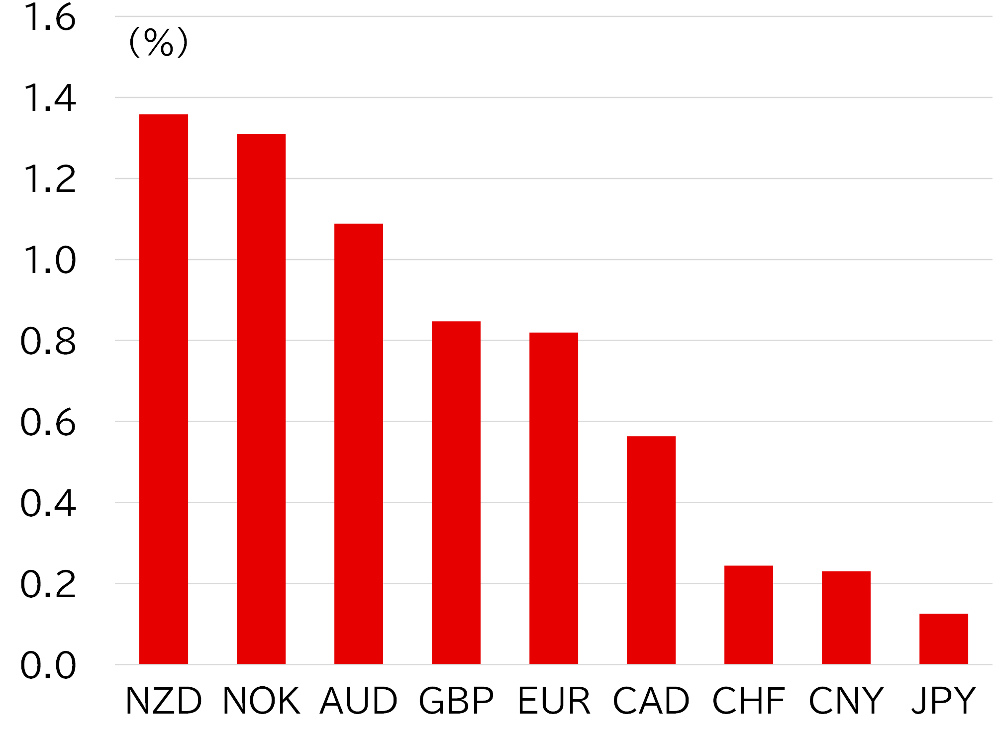 The USD/JPY opened the week at 143.79. Dollar selling resumed on Monday 2 June following weekend news that President Donald Trump planned to raise tariffs on steel and aluminum to 50%, fueling renewed concern over the outlook for US-China trade negotiations. The USD/JPY fell to below 142.50 by early 3 June, further pressured by a weaker-than-expected US ISM manufacturing PMI. A rebound followed as bargain hunters stepped in, and the recovery extended after the April US JOLTS data beat market expectations overall, lifting the USD/JPY back above 144. On 4 June, the pair climbed to around 144.50 during Tokyo trading, but then tumbled to around 142.50 again as the ADP employment report and ISM services index both came in weak. Support around this level held firm, and on 5 June the pair gradually regained ground. Worse than expected US initial jobless claims weighed, but the dollar strengthened following reports of a US-China leaders' phone call, and the pair climbed close to 144. The USD/JPY was trading above 143.50 at the time of writing on 6 June (Figure 1). Looking at G10 currencies more broadly, the dollar weakened this week, although the magnitude of the move appears modest (Figure 2).