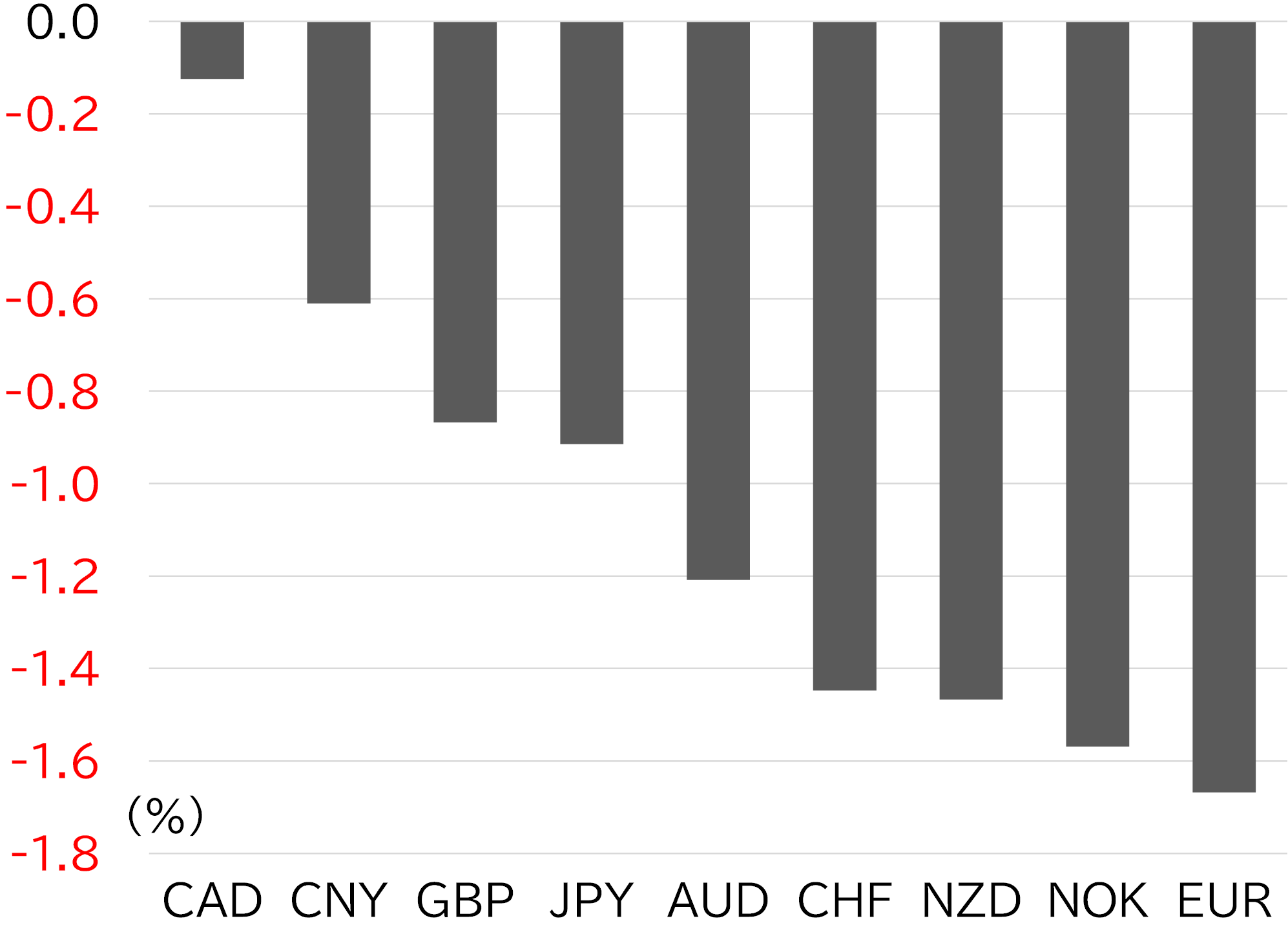 The USD/JPY opened the week at 156.63. The US military offensive against Iran that began on 28 February prompted dollar buying early on 2 March, and the USD/JPY climbed intermittently to above 157.50 as oil prices rose. Inflation concerns pushed back expectations for US rate cuts and supported continued dollar strength, lifting the USD/JPY to this week's high of 157.97 on 3 March. The pair failed to break past 158 and then moved gradually lower to 156.46 during Tokyo trading on 6 March after US President Donald Trump talked about providing military escorts for tankers in the Strait of Hormuz and media reports suggested Iran had approached the US about ceasefire talks. However, the USD/JPY rebounded to above 157.50 later the same day amid a continued rise in oil prices. Reports that the US Treasury was considering measures to contain oil prices capped gains somewhat, and the USD/JPY was trading around 157.50 at the time of writing on 6 March (Figure 1). The dollar strengthened across the board against G10 currencies this week amid heightened tensions in the Middle East. The euro was particularly weak as markets weighed its potential exposure to the situation (Figure 2).