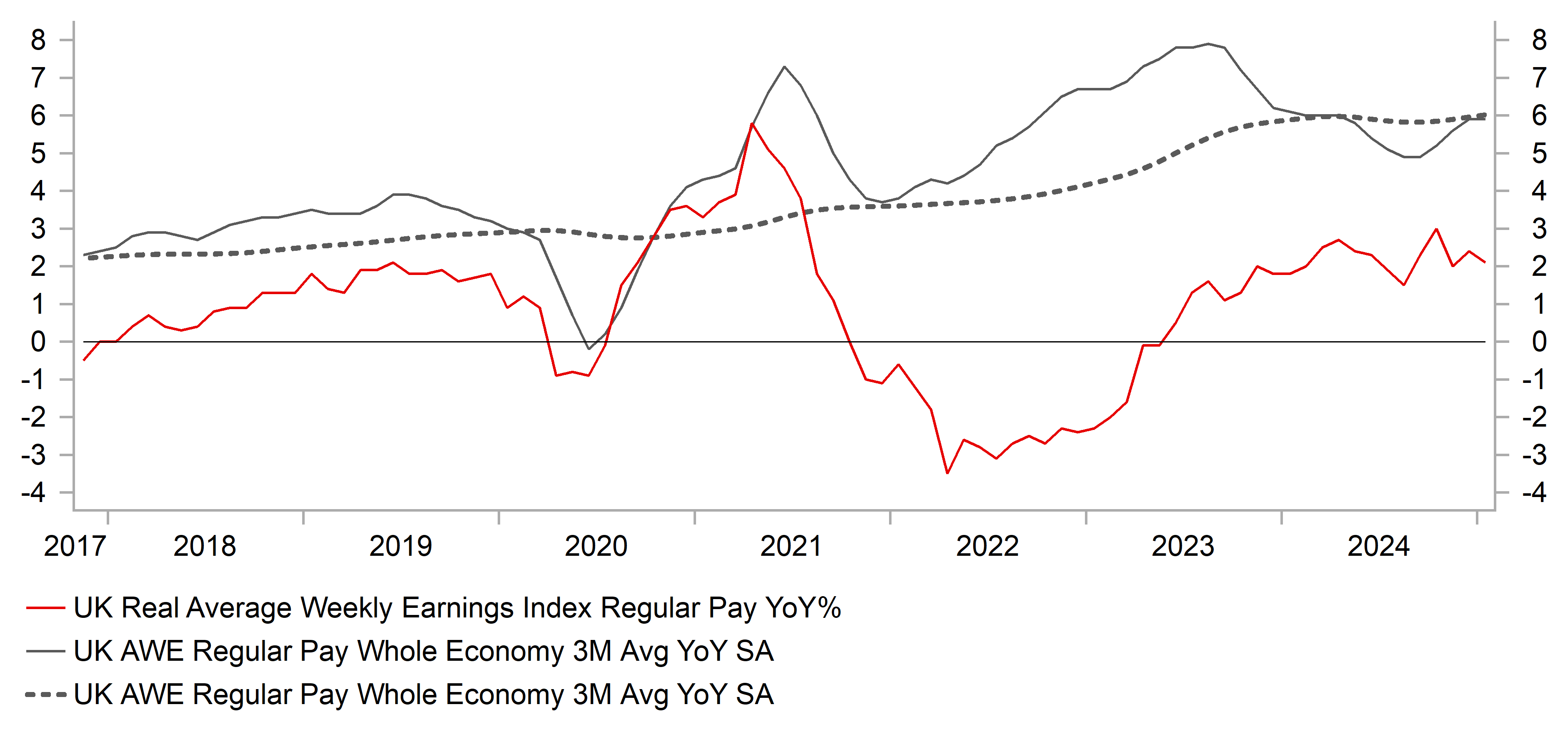 The pound advanced versus the dollar but weakened against the euro in March but on a BoE TWI basis managed to advance by 0.8%. Rate spreads continue to play a key role in supporting the pound. The 2-year UK-US swap spread and the 10-year Gilt-UST bond spread are moving very tightly with GBP/USD with declines in US yields not matched in the UK helping to fuel GBP demand. The macro data has been mixed but the employment data and the wage data certainly pointed to justification for a continued cautious approach to monetary easing by the BoE. The average weekly earnings 3mth YoY rate excluding bonuses remained elevated at 5.9% in January. Employment (PAYE data) data was stronger than expected and the advance services PMI was also stronger pointing to the potential for better consumer spending data ahead. That makes sense given the wage data points to continued growth in real incomes. The MPC meeting in March revealed continued caution with the guidance maintained that a “gradual and careful approach” to further easing was appropriate. We see “gradual and careful” as being one 25bp cut per quarter and hence view the OIS market as under-priced for three rate cuts by March 2026.