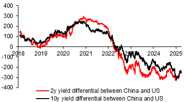 CHINA NEGATIVE YIELD DIFFERENTIAL WITH US NARROWED SOMEWHAT