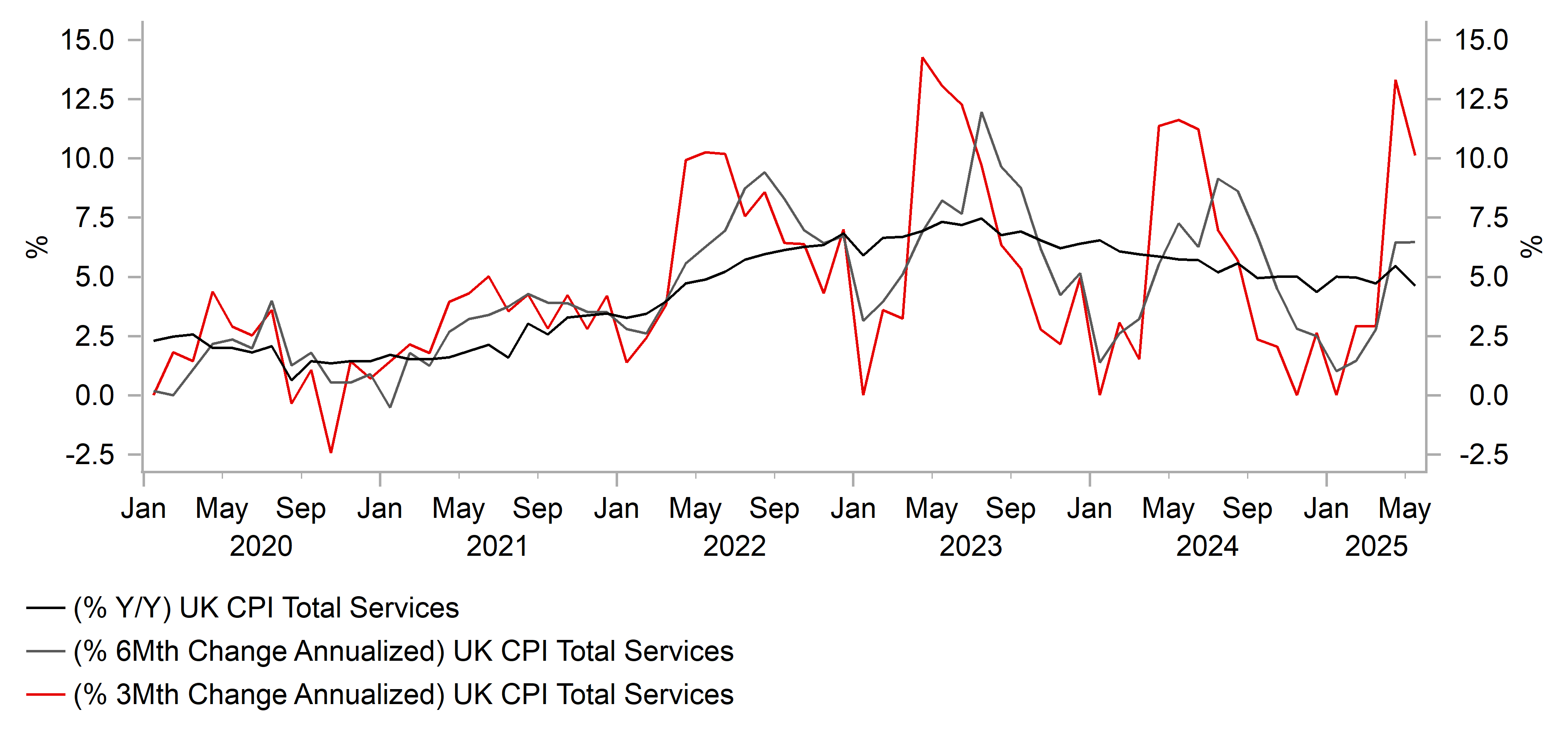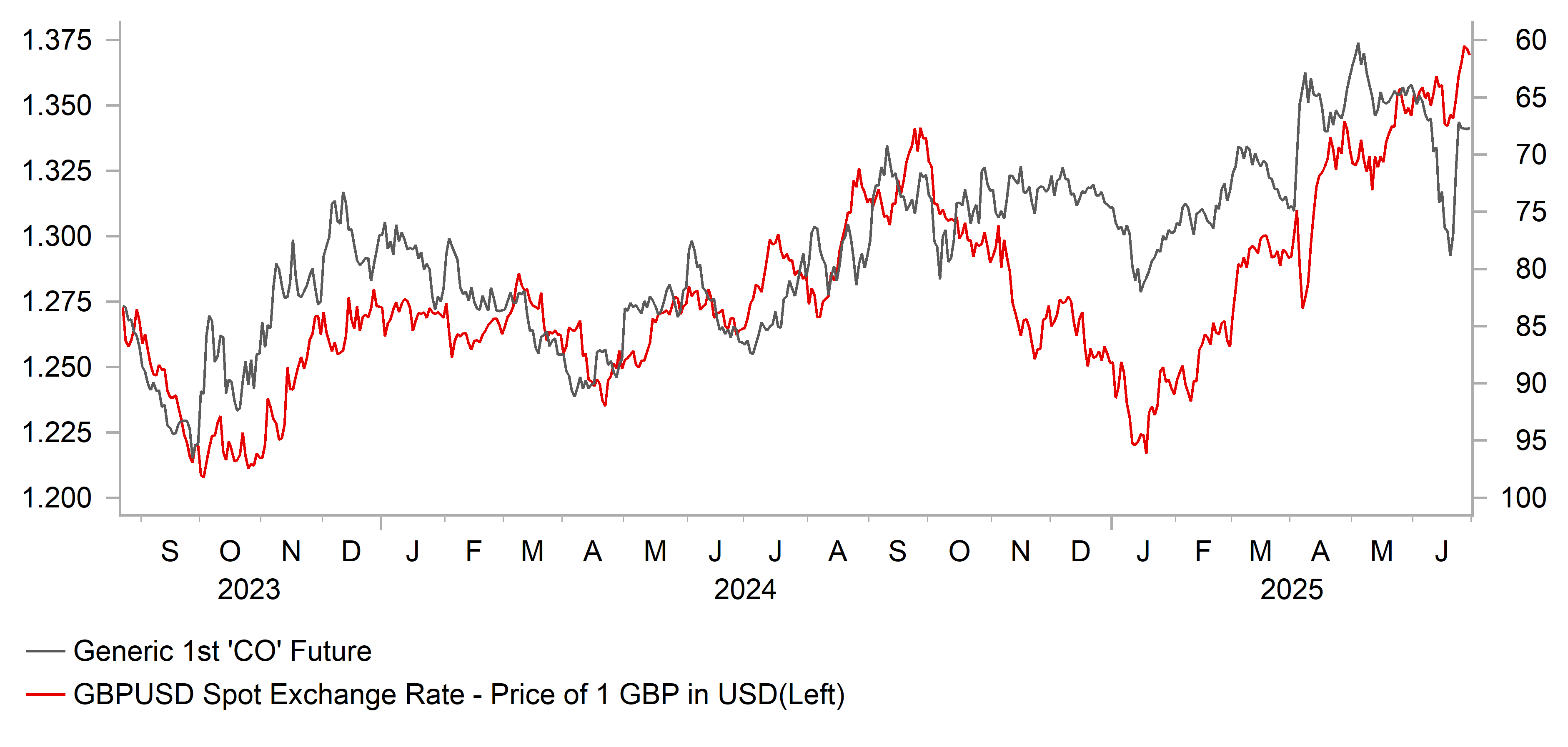 For much of June the pound lagged in performance versus G10 but then went from one of the worst performing currencies to finish June the third best performing currency. The turnaround coincided with the shift in risk conditions following the ceasefire between Israel and Iran. While there was no big risk-off move given equities remain well underpinned, inflation risks jumped following the surge in crude oil prices. The UK, more than most, is more vulnerable to day-to-day energy market moves (in particular natural gas) due to limited storage capacity and the surge in energy prices was a bigger negative risk for the UK. The ceasefire and the 15% plunge in crude oil prices helped lower natural gas prices and the outlook if geopolitics stabilises is bearish for oil, as was underlined by the IEA in its monthly report. An external shock is not what the UK needs given the signs of a weakening labour market. The PAYE jobs data revealed a 109k drop in employment. The PMI Composite data for Q2 (49.83) was lower than in Q1 (50.86) when real GDP growth expanded by 0.7% Q/Q pointing to that being a one-off. Real GDP is expected to slow back to 0.2% or possibly even 0.1% Q/Q in Q2.