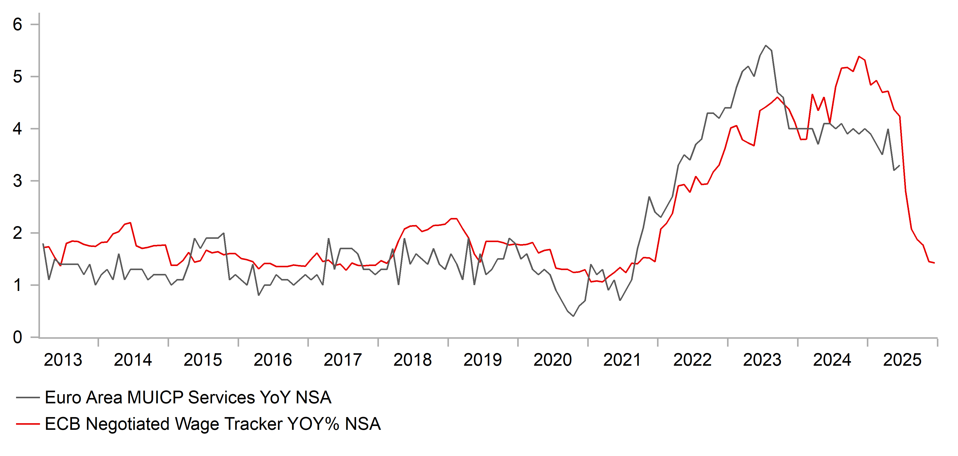 NEGOTIATED WAGES VS. SERVICES CPI YOY, %