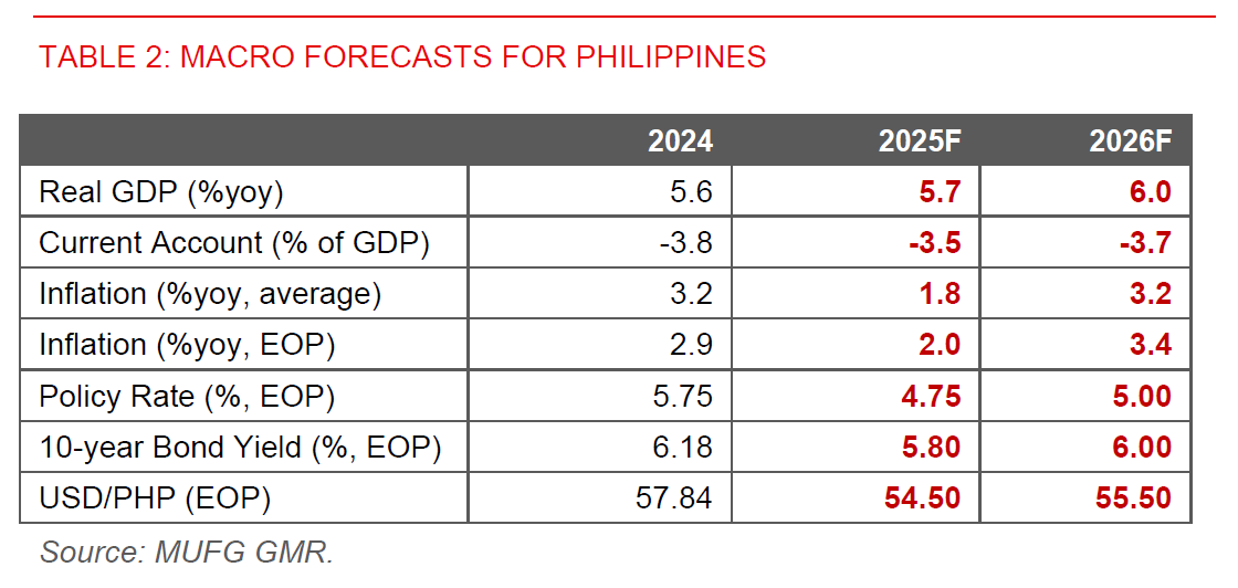 • As such, we continue to forecast BSP to remain dovish and cut the policy rate by a further 75bps, bringing it to 4.75% by end-2025.
