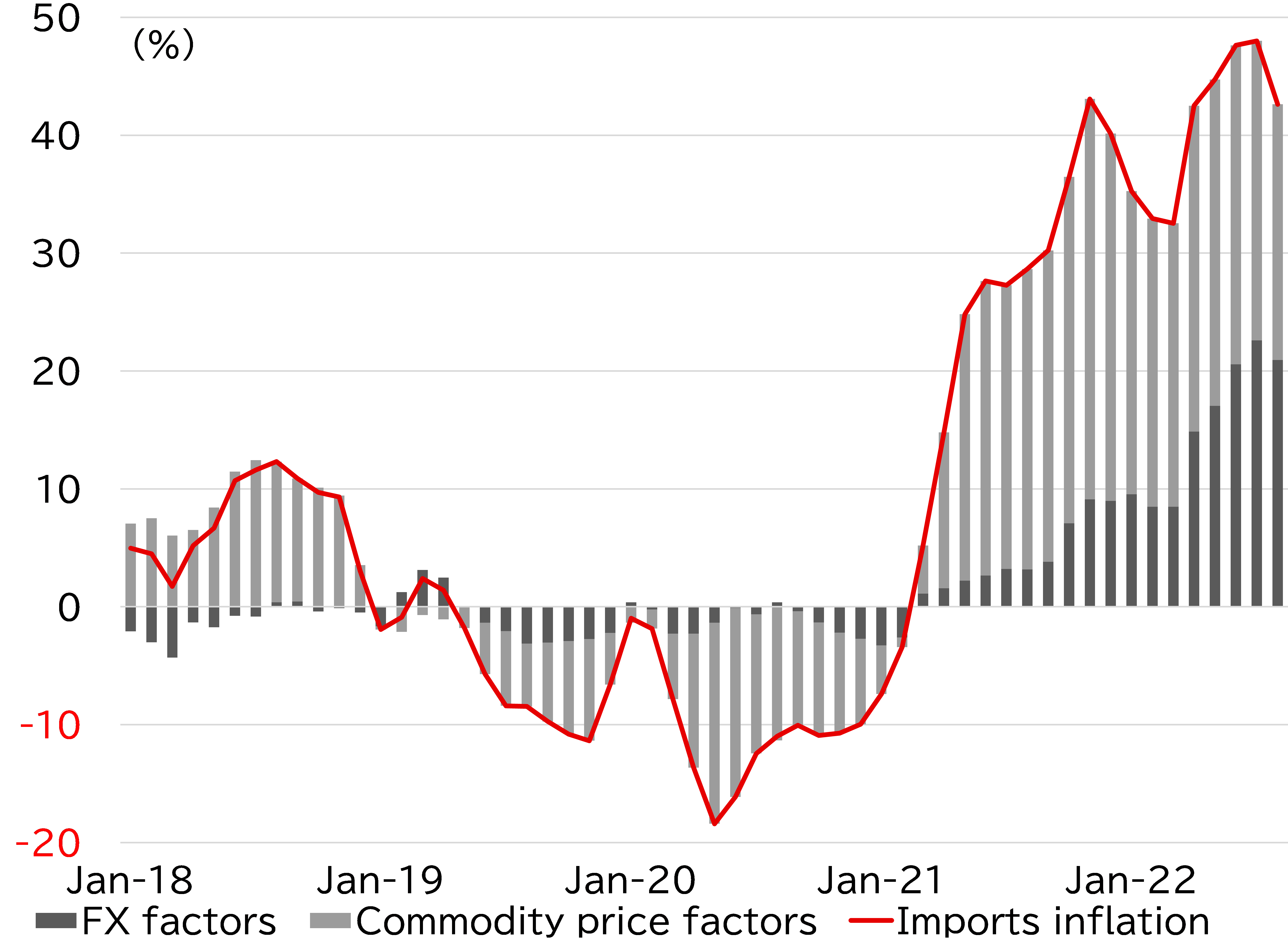 The Japanese government on 30 September announced that it had formulated a package of comprehensive economic measures. Apparently, the main pillars of the package will be a response to the sharp rise in prices and efforts to increase wages. The reason behind rising import prices has recently shifted from commodity prices to the weak yen (Figure 6). It is reasonable to assume that the rise in import prices due to the weak yen will be passed through to consumers despite any measures taken this time. We see the risk that this could increase public dissatisfaction as it has in the US, which could have an impact on monetary policy even before Kuroda's term expires.