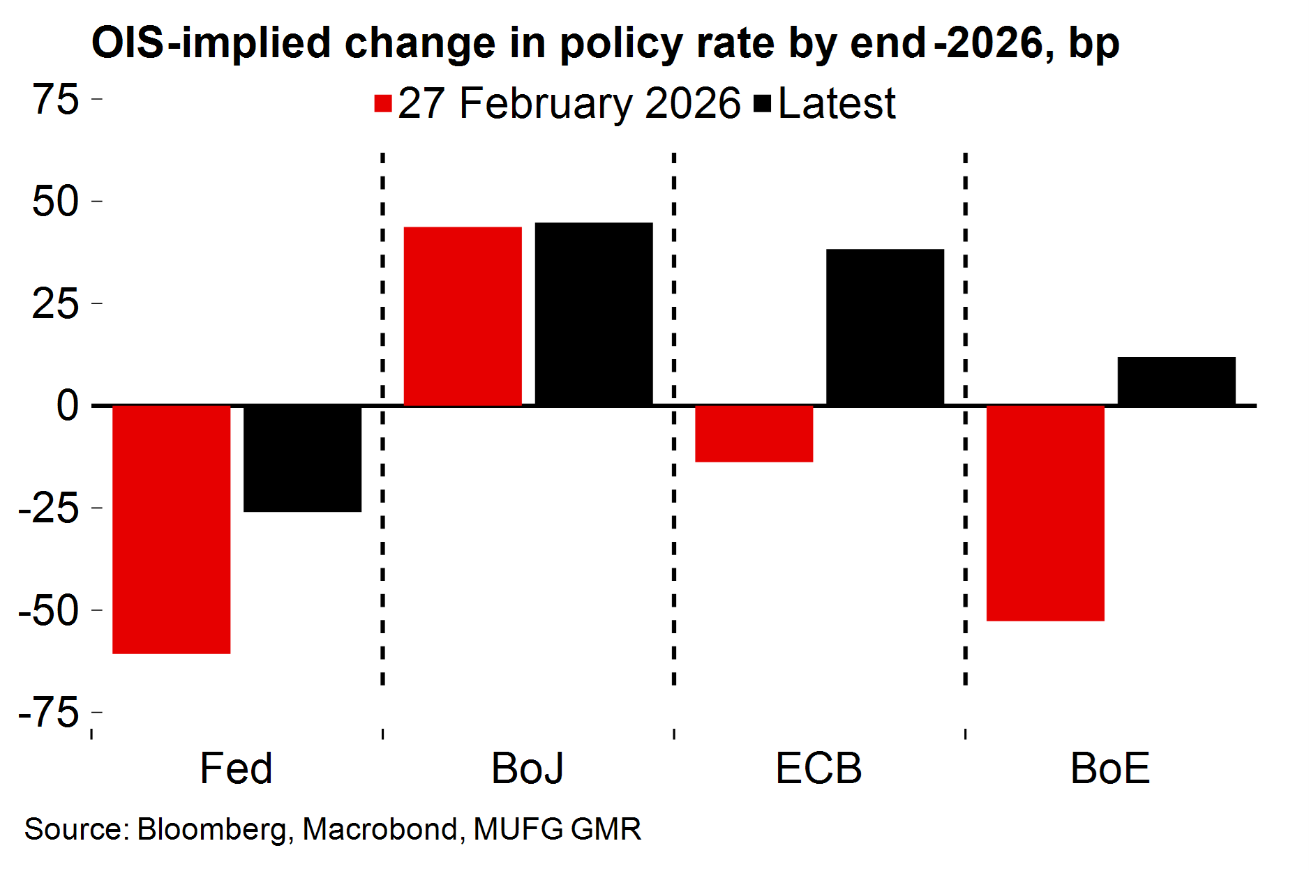 Our pre-conflict call was for two rate cuts this year to a terminal rate of 3.25%. We maintain that for now, while acknowledging the obvious risks around the timing and extent of further easing.