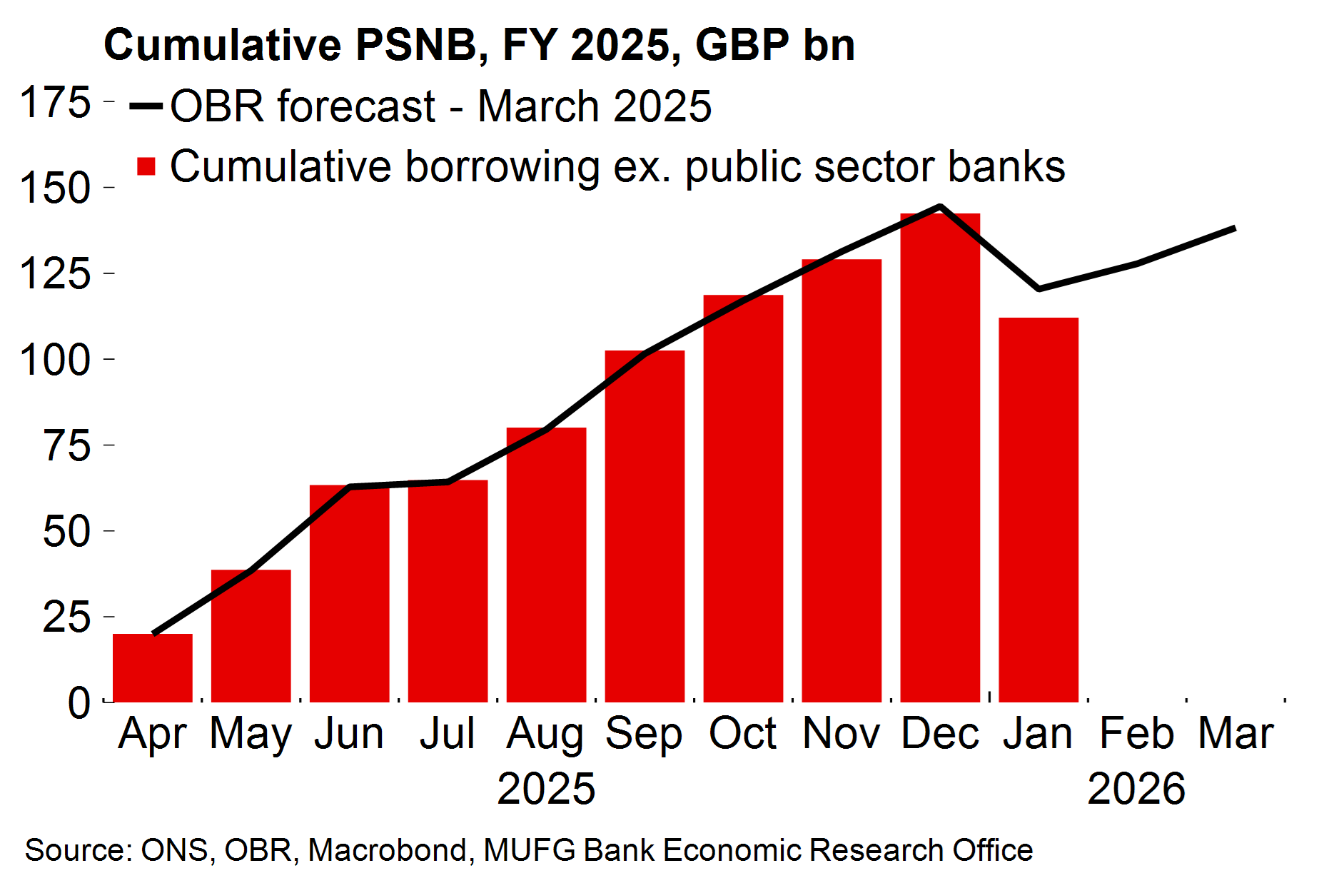 There will be a few other things to watch. There may be a judgment on the Employment Rights Act. That became law in December (i.e. after the Budget) and could be expected to weigh on hiring. The current unemployment projections already look on the optimistic side to us. It’s also plausible that the OBR will put us on notice about a change in its assumptions for net migration to the UK after the sharp fall in the latest data, as it did last spring on productivity growth. That said, the OBR is still without a chair which may reduce the immediate scope for judgments with significant policy implications. The government will certainly hope so.