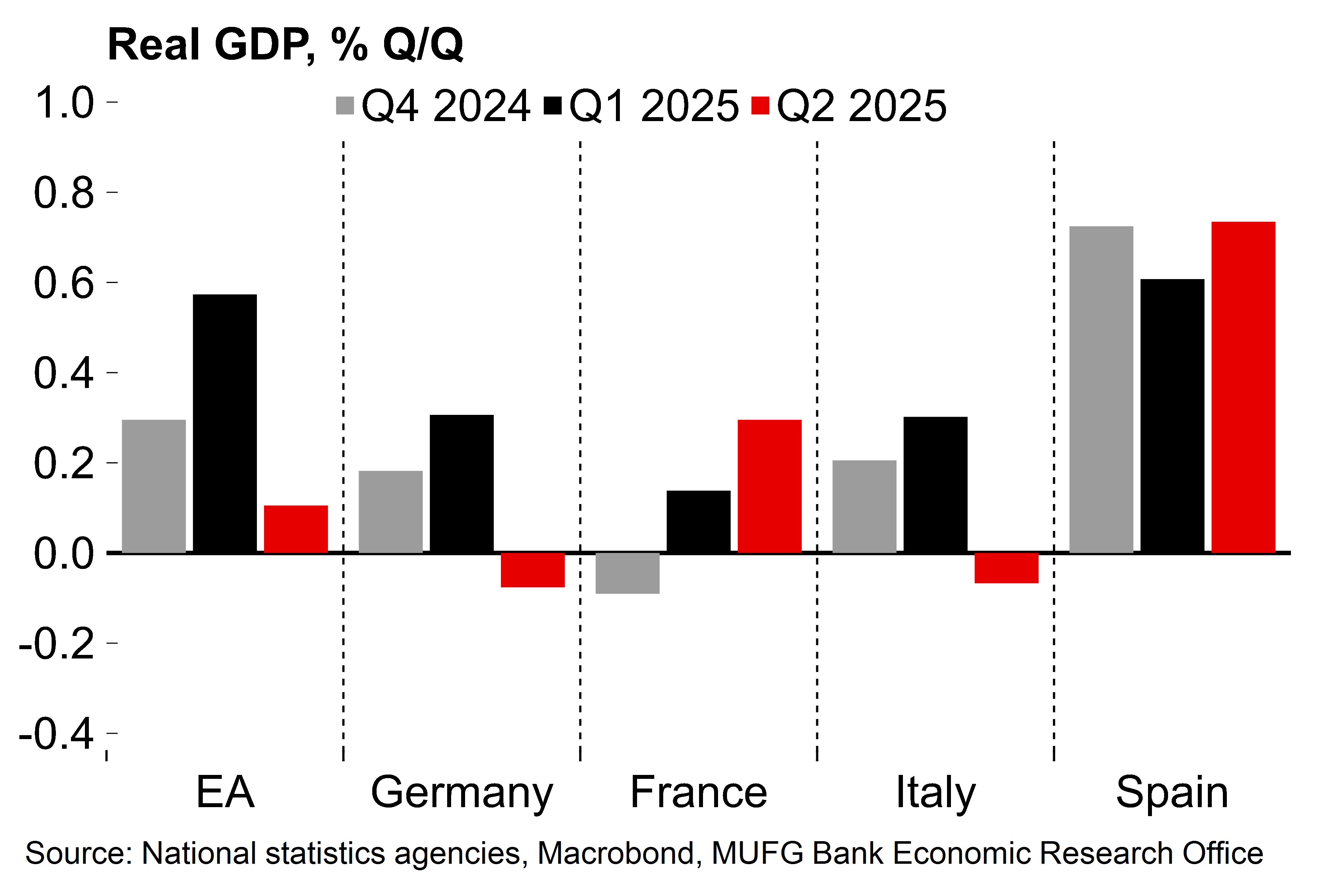 Growth predictably slowed a strong Q1 – but, with support from Spain, the euro area avoided a contraction