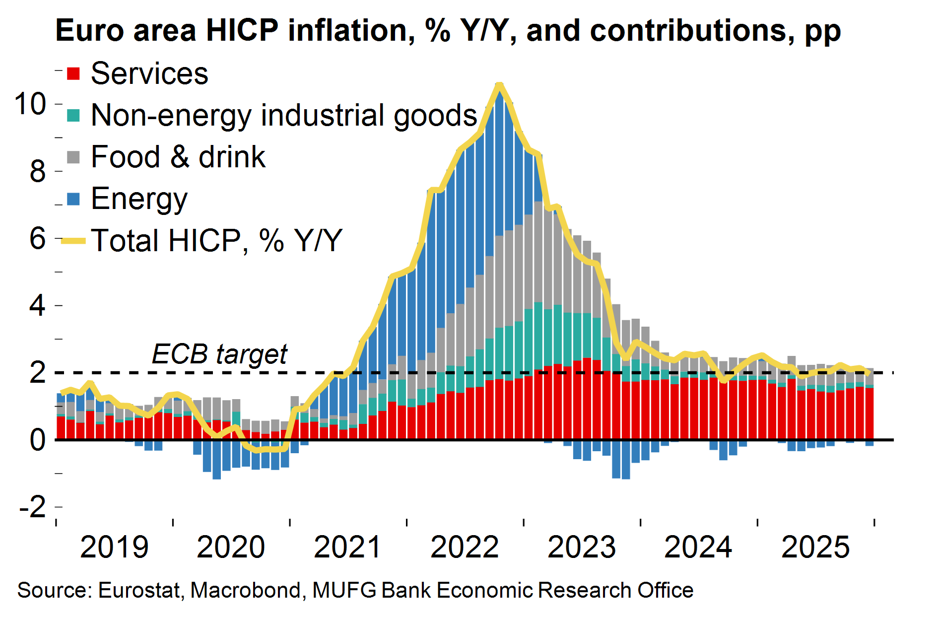 - After stable inflation in 2025, the disinflation process is likely to resume this year – we see the headline rate averaging 1.7% in 2026. FX strength, trade diversion and lower energy prices could all push headline rates further below the ECB’s target. But policymakers are clearly content with the current policy setting and the bar for policy adjustment will remain high, especially in the context of relatively firm economic activity.