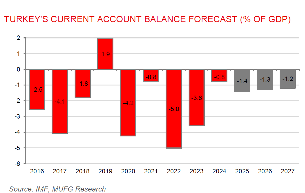 Turkey’s posts third consecutive current account surplus. Turkey recorded another current account surplus of USD1.11bn in September. This was achieved despite a sharp deterioration in the goods trade deficit, reflecting weaker core trade and a worsening gold balance. The strength of services income driven by rising tourism and transport revenues, helped limit the decline in the surplus. However, the 12-month rolling current account deficit increased to approximately USD20.1bn (about 1.5% of GDP), indicating that structural external pressures remain. Meanwhile, the capital account saw net outflows of around USD6.0bn, and official reserves fell by about USD8.7bn, driven by resident outflows and errors and omissions. Going forward, sustained improvement will depend on narrowing the trade gap, maintaining momentum in services, stabilising capital flows, and ensuring foreign-currency reserves stay adequate amid a still-challenging global environment.