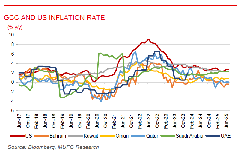 July CPI trends in UAE and Saudi Arabia. In July, Dubai’s inflation picked up to 2.9% y/y from 2.4% in June, with housing and utilities remaining the main driver, surging 6.4% y/y, while transport costs posted a smaller decline of 3.4%. prices also rose in categories such as food, beverages, and education, lifting the monthly CPI by 0.4%. in Saudi Arabia, headline inflation stayed steady at 2.1% y/y from 2.3% y/y in June for the second consecutive month, the lowest in five months, supported by a 5.6% rise in housing and utilities, led by slower rent growth. Modest annual gains were recorded in food, restaurants, and education, while home furnishings, clothing, and transport saw declined. Going forward, Dubai’s inflation is likely to remain under upward pressure in the near term due to continued housing costs strength and seasonal spending trends, while Saudi Arabia’s price growth is expected to stay relatively stable, with housing remaining the key driver but offset by easing global commodity costs and contained demand in other sectors.