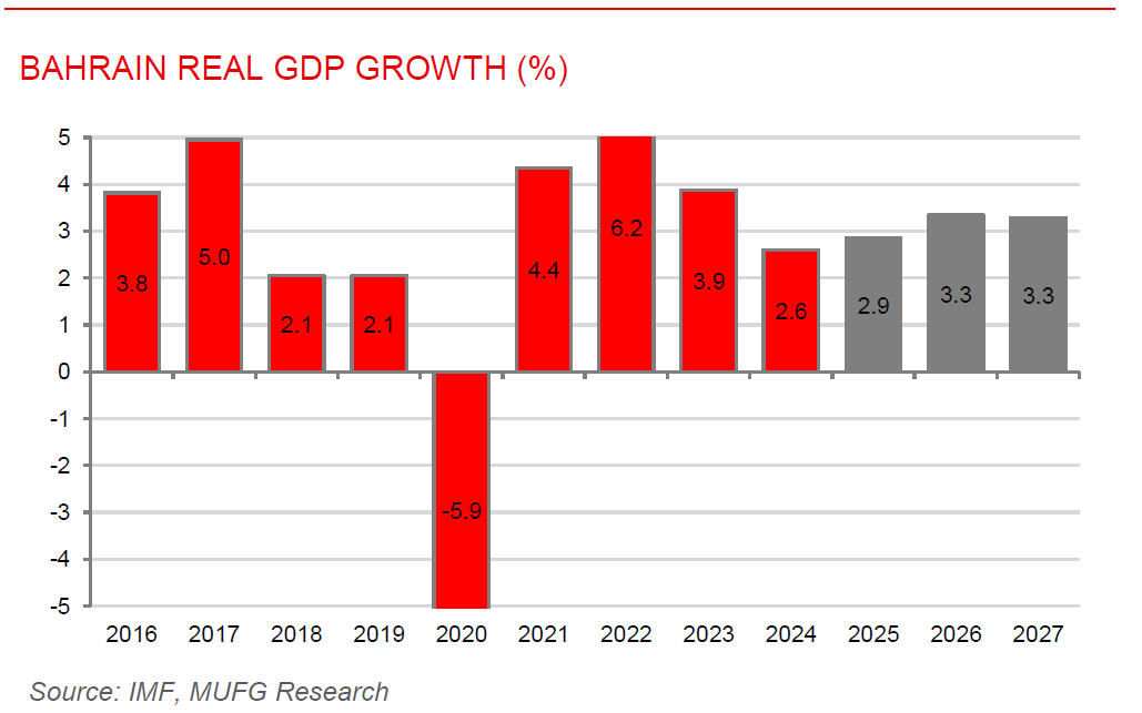 IMF urges fiscal consolidation as Bahrain’s debt rises despite steady growth. The IMF concluded its 2025 Article IV consultation with Bahrain, noting that while economic growth remained steady, rising fiscal vulnerabilities pose significant risks. Real GDP growth slowed to 2.6% in 2024 amid weaker oil output but was supported by a resilient non-hydrocarbon sector, led by financial services, while inflation stayed low at 0.9%. However, fiscal pressures intensified, with the budget deficit widening to 11% of GDP and public debt climbing to 134% of GDP, alongside still-low foreign exchange reserves despite recent improvements. Looking ahead, growth is expected to pick up to 2.9% in 2025 and 3.3% in 2026 as oil production recovers, refinery expansion comes fully online, and non-oil sectors such as tourism, logistics and the digital economy continue to expand. The IMF welcomed Bahrain’s diversification progress and recently announced fiscal measures, including corporate income tax and subsidy reforms, but stressed that sustained and credible medium-term fiscal consolidation, stronger revenue mobilisation, reduced subsidies, and enhanced fiscal transparency are essential to place debt on a downward path and safeguard macroeconomic and financial stability.