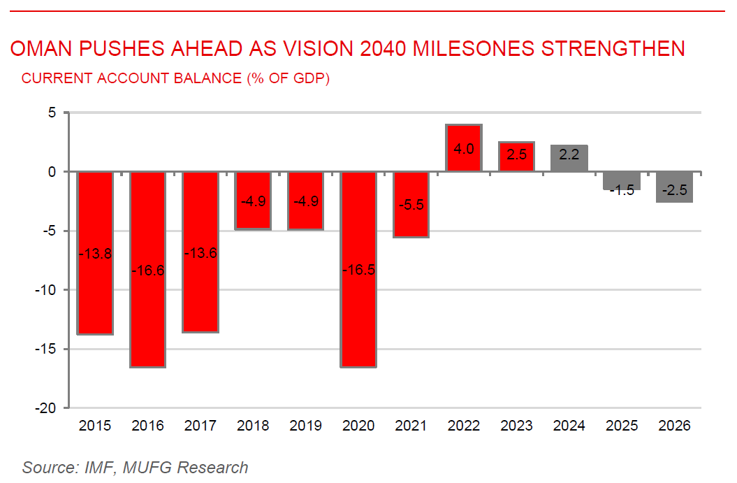 Oman’s diversification drive gains traction under Vision 2040. According to the 4th periodic progress report released by the Oman Vision 2040 Implementation Follow-up Unit, 74% of the national performance indicators show concrete advancement toward their respective targets. The report highlights major strides across multiple pillars under the People and Society pillar, innovation include a rise in Omani universities’ global rankings, increased international accreditation of private institutions, and enhancements in the national technical and vocational education framework. In the Economy and Development pillar, non-oil sectors comprised 72.8% of GDP in 2024, with manufacturing growing 8.3% and agriculture and fisheries 2.8%, while the current account surplus reached 1.83%, exceeding the earlier target of -7%. On the Environment and Sustainable Development front, Oman key clean-energy projects, reinforcing its net-zero strategy. The comprehensive update confirms that while execution remains a challenge, strong implementation momentum now underpins the country’s medium-term economic and diversification trajectory.